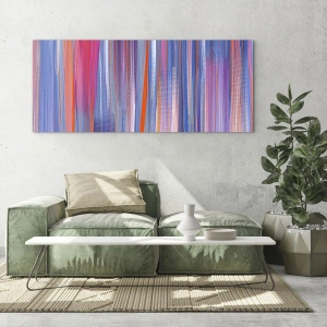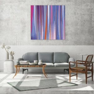 • Uma composição abstrata de listras verticais em tons intensos de rosa, roxo e azul. Este design moderno complementa perfeitamente interiores contemporâneos ou artísticos.