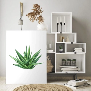 O quadro em vidro é feito de vidro de 4mm de espessura. As bordas do vidro têm um corte trapezoidal fosco. O quadro é segura de usar e pronto para pendurar – tem ganchos de metal presos à parte de trás do quadro e e espaçadores de espuma para regular a distância uniforme do quadro da parede.