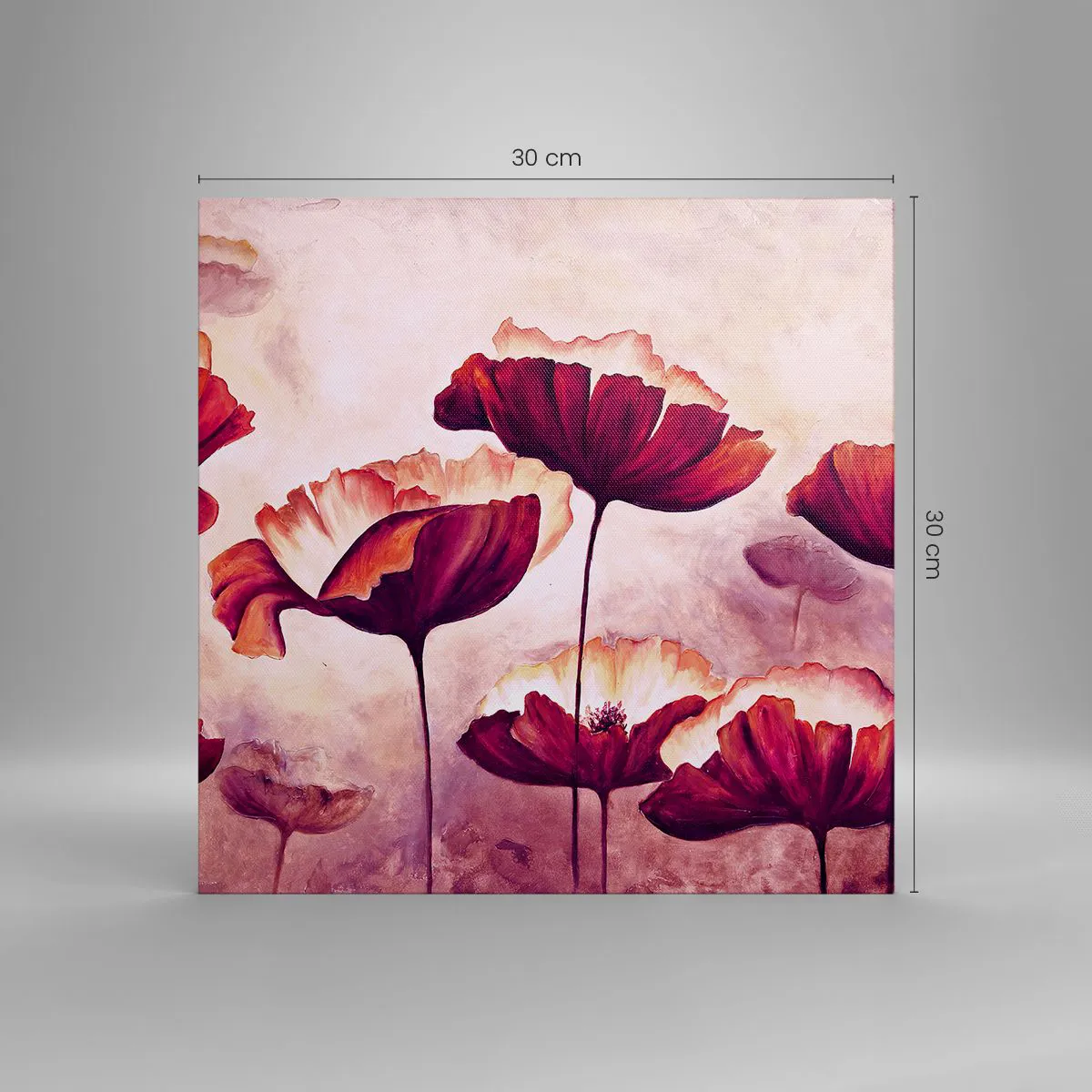 Quadro em tela - Pétala vermelha e branca - 30x30 cm