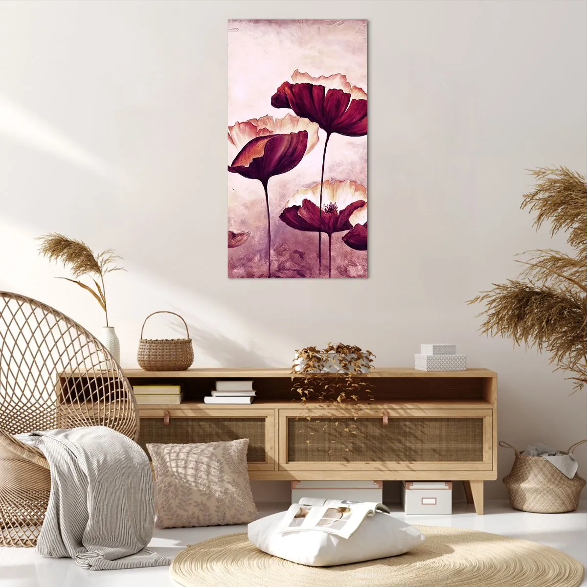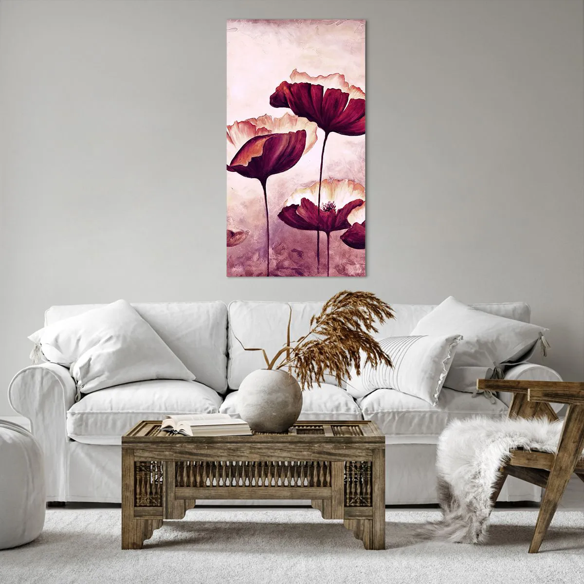 Quadro em tela - Pétala vermelha e branca - 65x120 cm