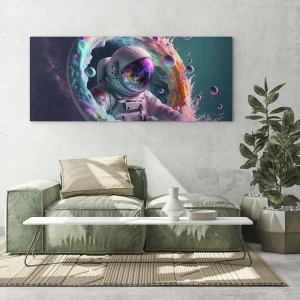 Quadro em vidro - Astronauta no espaço colorido - 70x50cm - Portão estrela - Decoração de parede moderna para a sala de estar e quarto ARTTOR