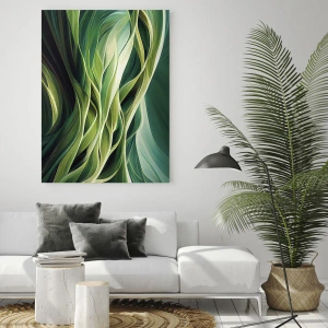 - A pintura retrata ondas verdes abstratas, cujas formas fluidas lembram folhas em movimento. A composição exala a tranquilidade e a energia da natureza, criando uma sensação de profundidade e espaço. É uma decoração ideal para interiores modernos.