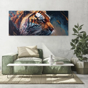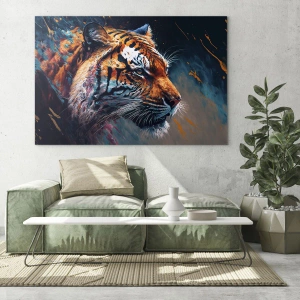 - A pintura retrata um tigre capturado em uma explosão dinâmica de cores, combinando beleza natural com expressão artística. É uma mistura de ferocidade, força e arte em uma única imagem.