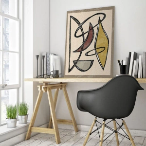 Os elementos gráficos evocam um sistema de forças iguais – verticais e horizontais – coexistindo em tensão, mas ao mesmo tempo em um todo perfeitamente equilibrado. Suas formas – ovais, arredondadas, colidindo umas com as outras – constroem a dinâmica e a energia da pintura. Este estilo é perfeito para espaços modernos e minimalistas.