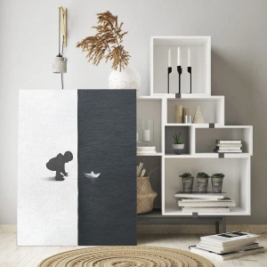O quadro em vidro é feito de vidro de 4mm de espessura. As bordas do vidro têm um corte trapezoidal fosco. O quadro é segura de usar e pronto para pendurar – tem ganchos de metal presos à parte de trás do quadro e e espaçadores de espuma para regular a distância uniforme do quadro da parede.