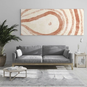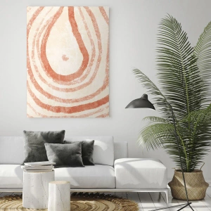 O estilo minimalista da pintura permite uma ampla interpretação – desde o simbolismo do crescimento e da harmonia até uma representação abstrata de estruturas naturais. Uma paleta de cores dominada por tons quentes de coral traz aconchego e elegância ao interior.