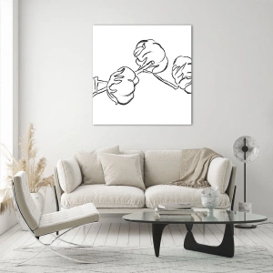 • Algodão, Minimalismo, Contorno, Botânica, Preto e branco, Flores, Arte, Para o escritório, Para o escritório, Para a sala de jantar, Para o hall, Para a sala de estar, Para o quarto, Branco, preto, preto e branco, Quadrado