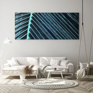 Quadro em vidro - Macrofotografia de uma folha de palmeira em tons de turquesa - 70x50cm - Textura verde - Decoração de parede moderna para a sala de estar e quarto ARTTOR