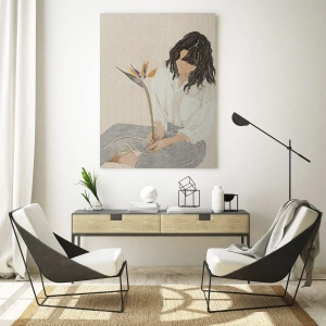Quadro em vidro - Retrato com uma flor exótica - 80x120 cm