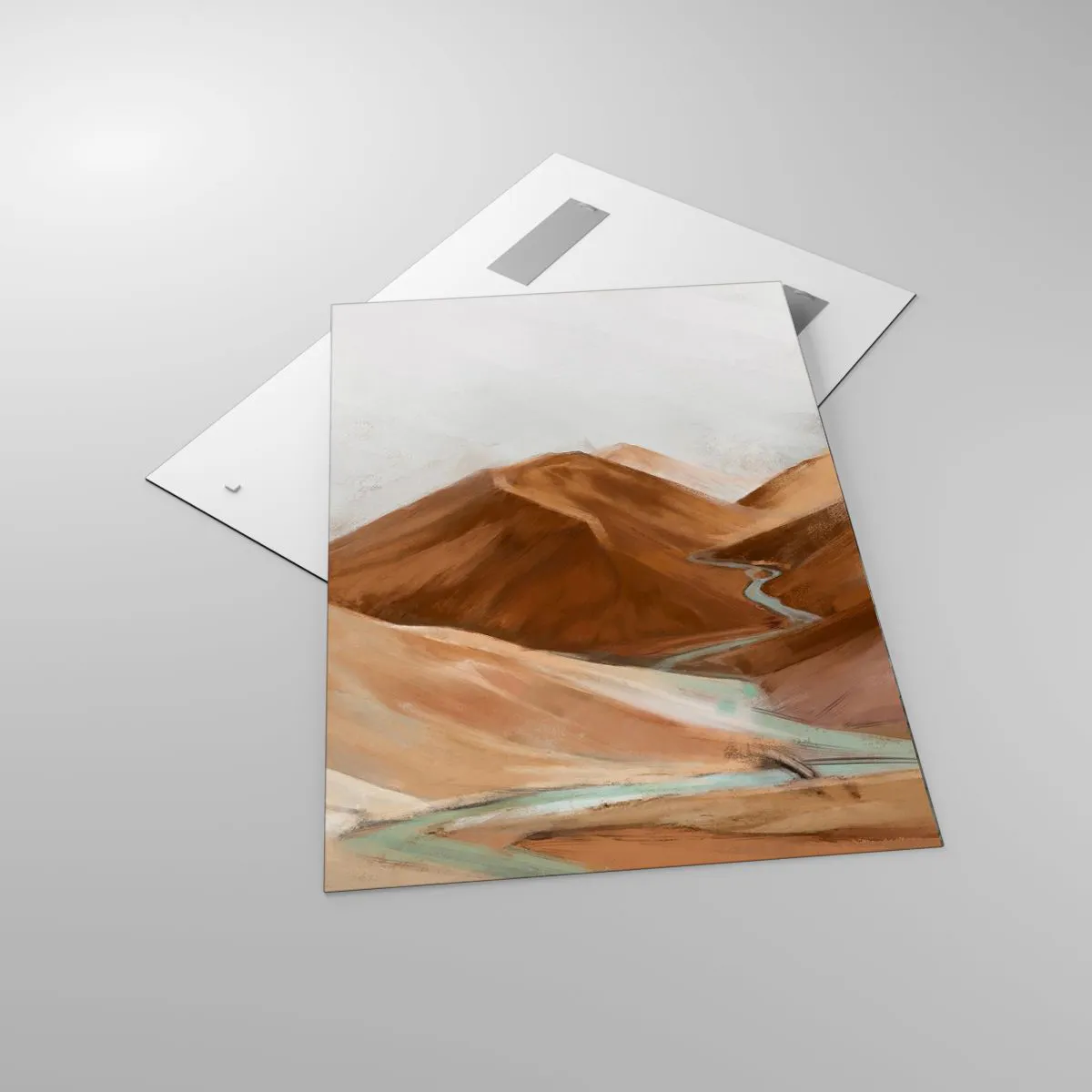 O quadro em vidro é feito de vidro de 4mm de espessura. As bordas do vidro têm um corte trapezoidal fosco. O quadro é segura de usar e pronto para pendurar – tem ganchos de metal presos à parte de trás do quadro e e espaçadores de espuma para regular a distância uniforme do quadro da parede.