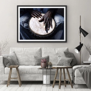 Pôster com moldura preta - Mãos tocando um tambor djembê em um jogo de ritmo - 50x70cm - Viva no seu próprio ritmo - Decoração de parede moderna para a sala de estar e quarto ARTTOR