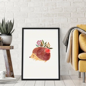- Este pôster retrata um ouriço encantador carregando uma maçã e galhos nas costas, feito com uma delicada técnica de aquarela. Cores quentes e um estilo de ilustração sutil conferem-lhe uma atmosfera única, semelhante a um conto de fadas.