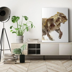Quadro em tela - Uma leoa correndo em uma interpretação artística - 70x50cm - Graça selvagem - Decoração de parede moderna para a sala de estar e quarto ARTTOR