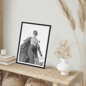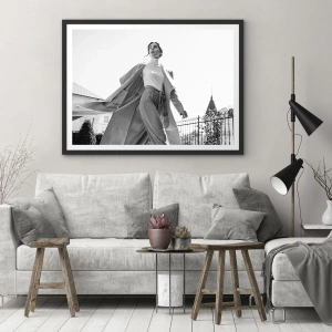 Pôster com moldura preta - Uma mulher estilosa com um casaco longo caminha com confiança - 50x70cm - Vens comigo? - Decoração de parede moderna para a sala de estar e quarto ARTTOR