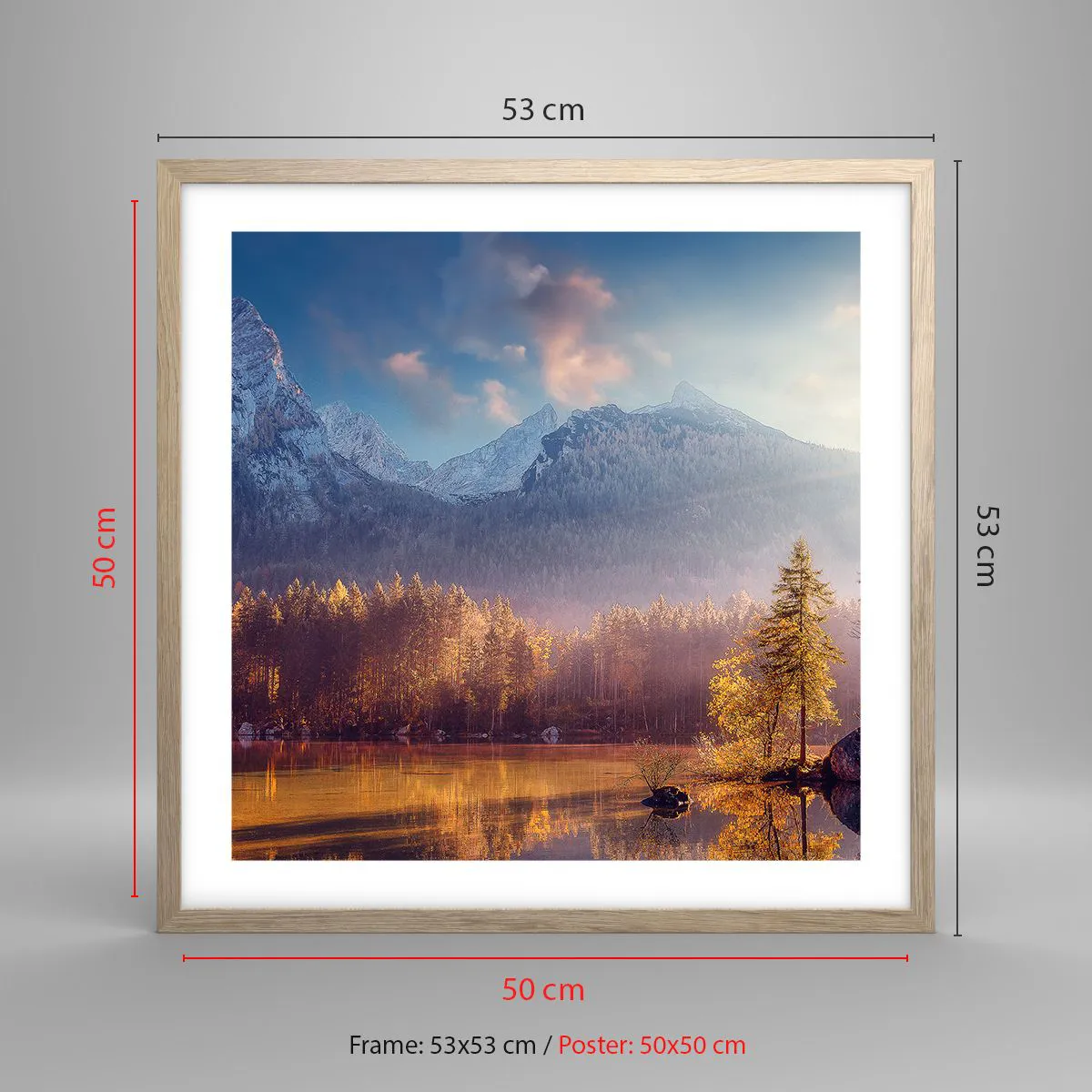 Pôster com moldura de carvalho claro - Nas montanhas e vales - 50x50 cm