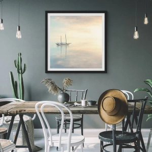 "Em um Mar de Silêncio" é um pôster que captura um momento de paz e harmonia. Ele retrata um navio em um mar calmo, cujo reflexo cria uma imagem delicada, quase surreal. É uma composição que traz uma atmosfera de relaxamento e tranquilidade ao interior.