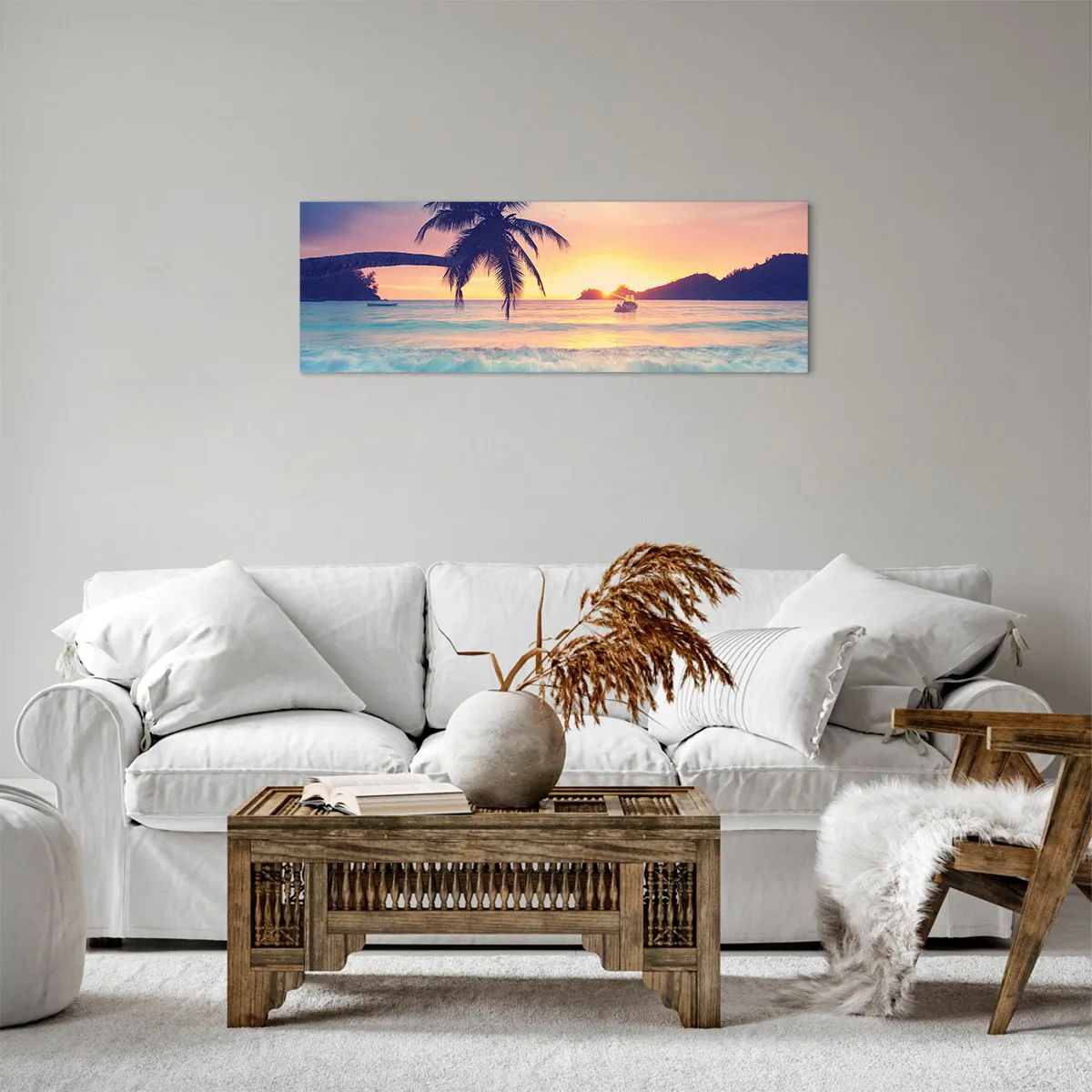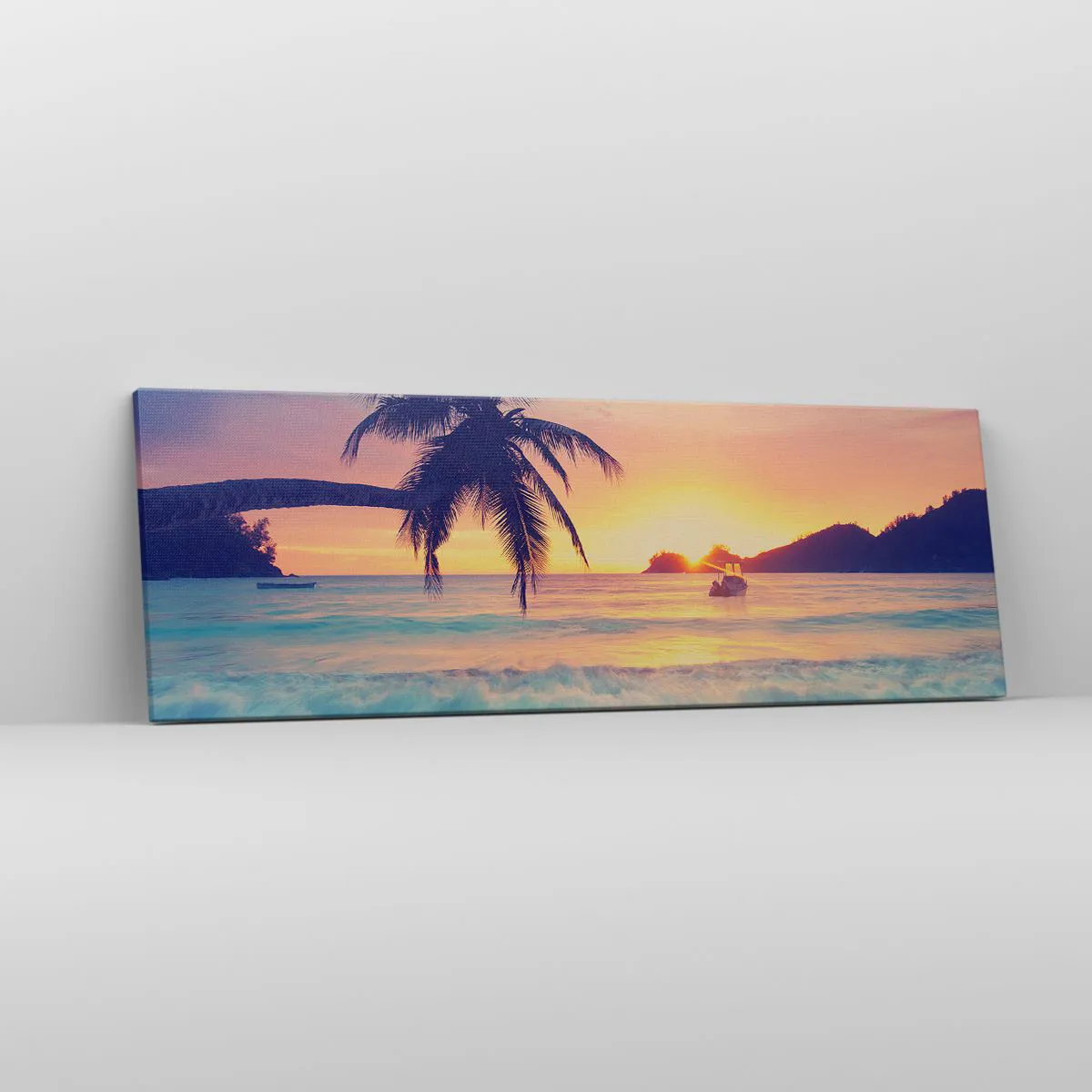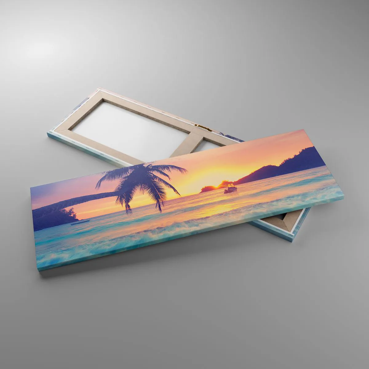 A tela é esticada na moldura. Os lados e bordas são impressos para criar uma continuação da imagem. O quadro está pronto para ser pendurado na parede. Cada produto tem um gancho ligado à moldura e um conjunto de montagem (parafuso + cavilha).