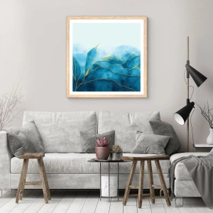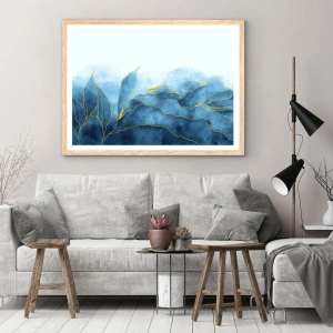 Pôster com moldura de carvalho claro - Azul dourado - 40x30 cm