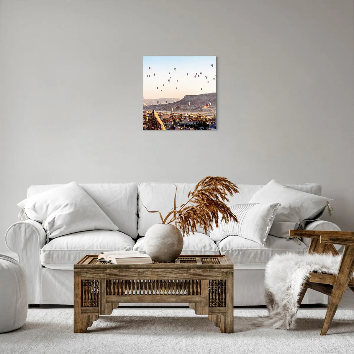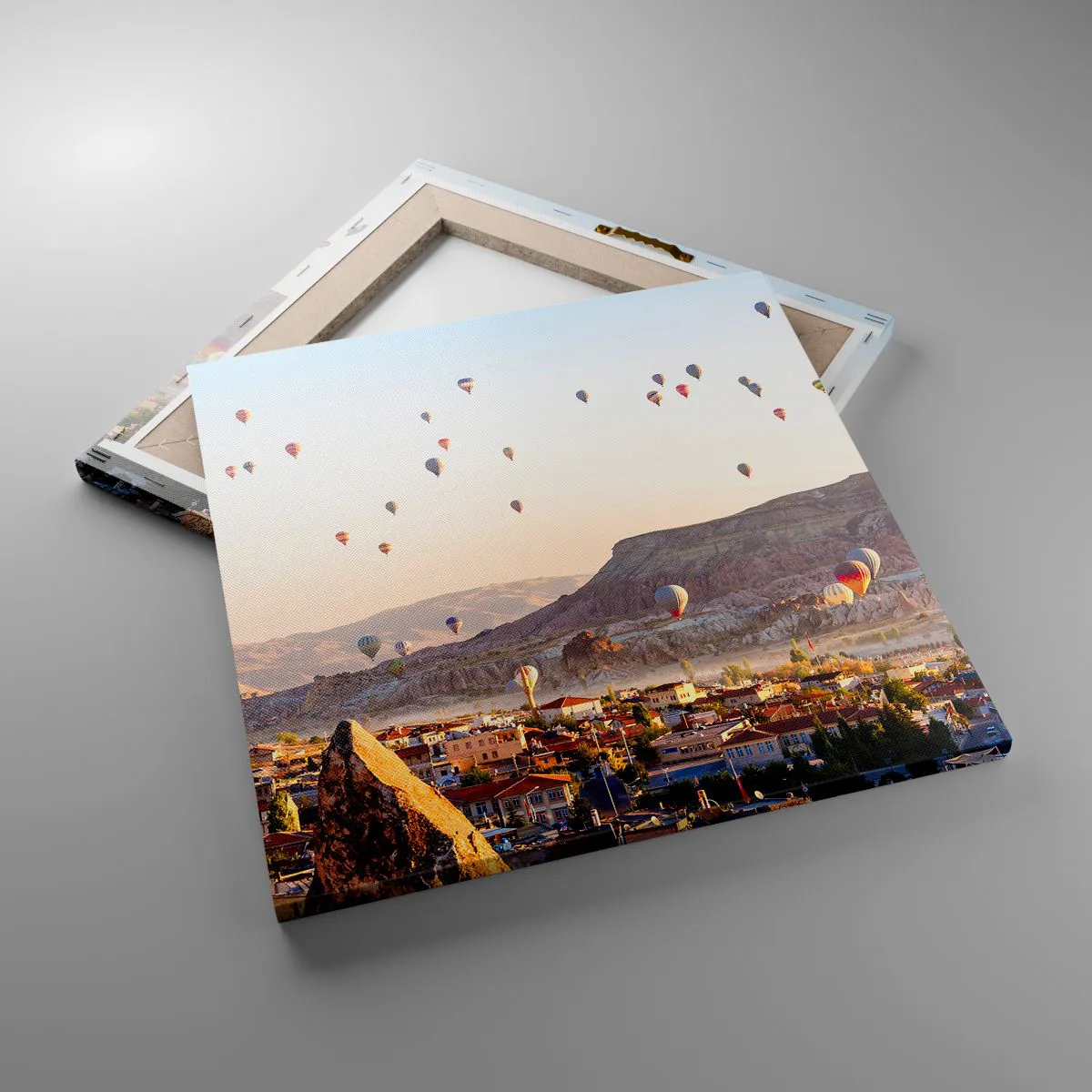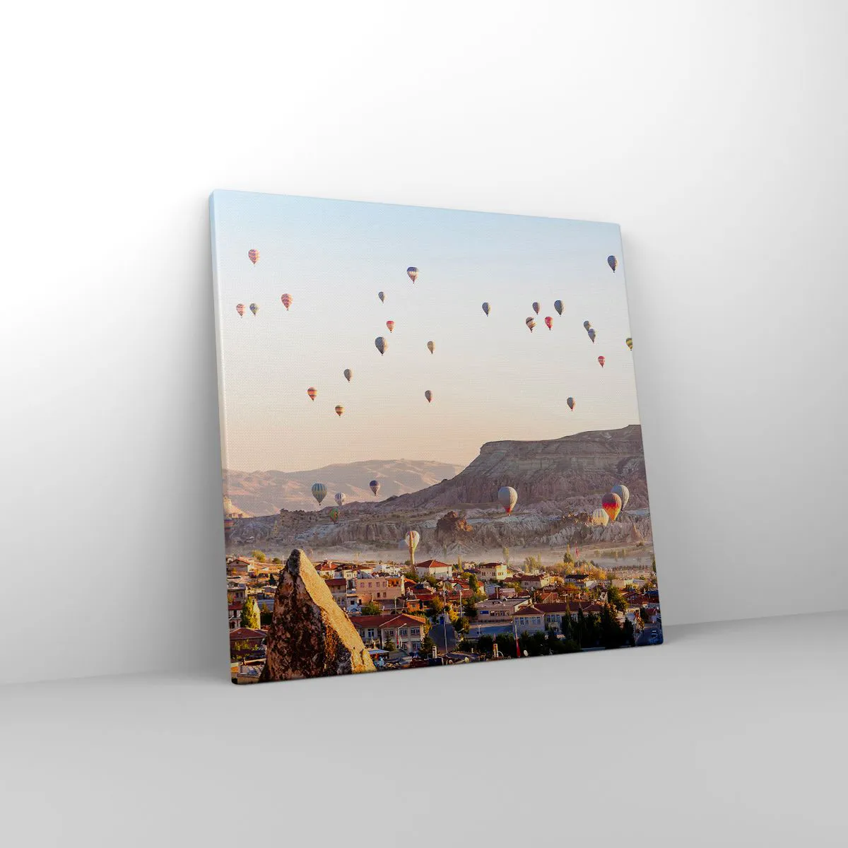 A tela é esticada na moldura. Os lados e bordas são impressos para criar uma continuação da imagem. O quadro está pronto para ser pendurado na parede. Cada produto tem um gancho ligado à moldura e um conjunto de montagem (parafuso + cavilha).