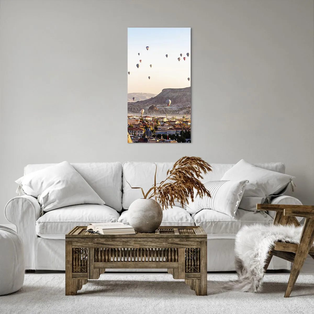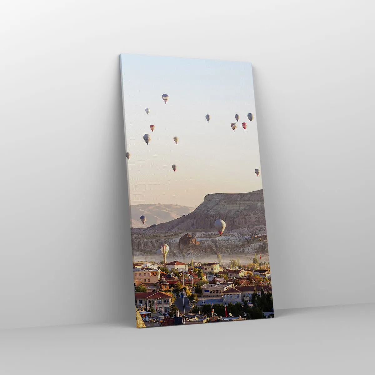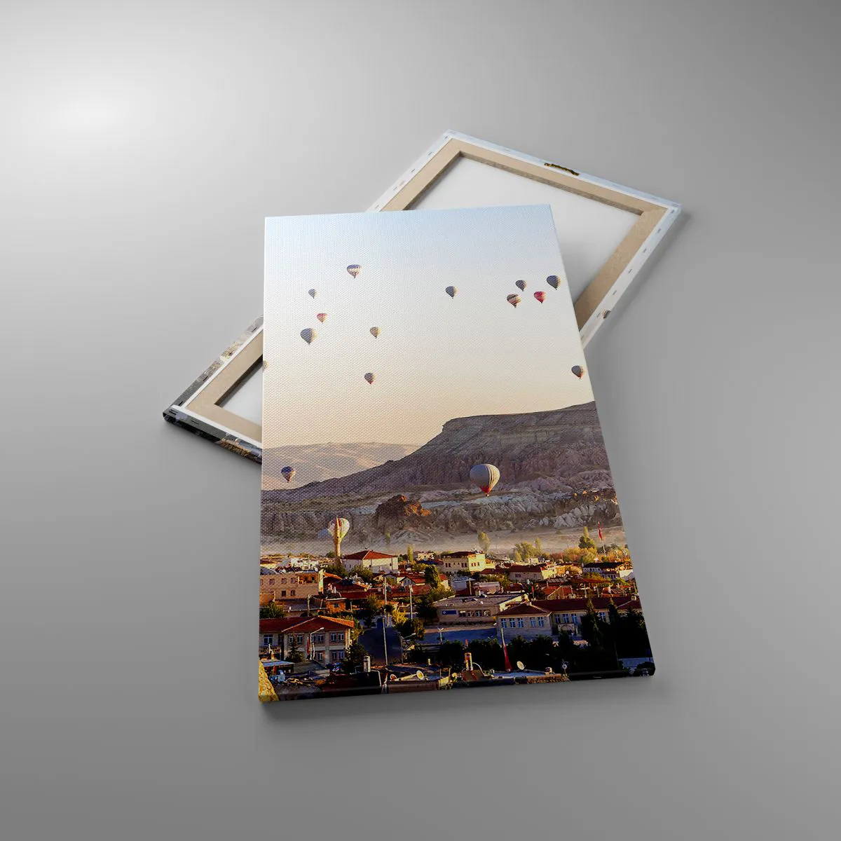 A tela é esticada na moldura. Os lados e bordas são impressos para criar uma continuação da imagem. O quadro está pronto para ser pendurado na parede. Cada produto tem um gancho ligado à moldura e um conjunto de montagem (parafuso + cavilha).
