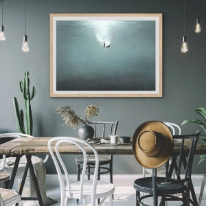 Pôster com moldura de carvalho claro - Nos braços do oceano - 91x61 cm