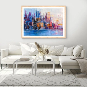 Pôster com moldura de carvalho claro - Metrópole alegre - 30x30 cm