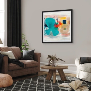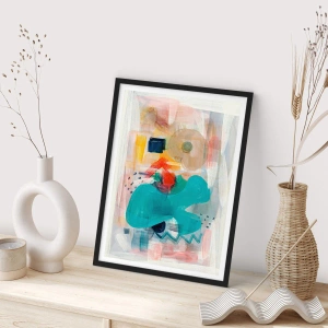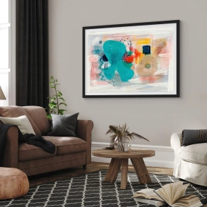 - O pôster apresenta uma composição expressiva de formas abstratas em cores vibrantes. A estrutura dinâmica e a rica paleta de cores conferem ao interior um caráter moderno e artístico.
