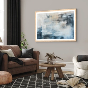 Pôster com moldura de carvalho claro - Atrás da cortina azul - 61x91 cm