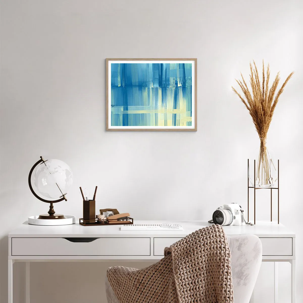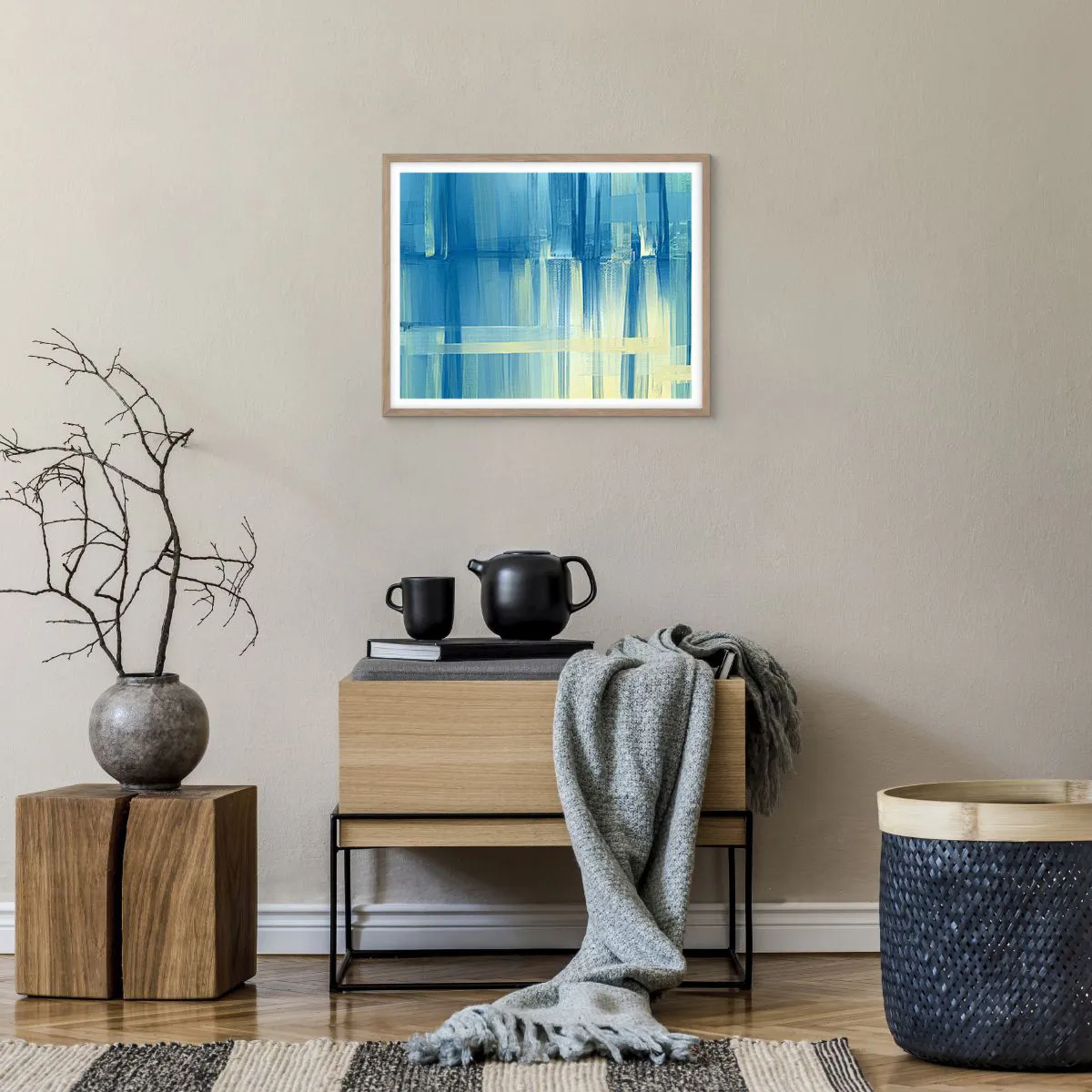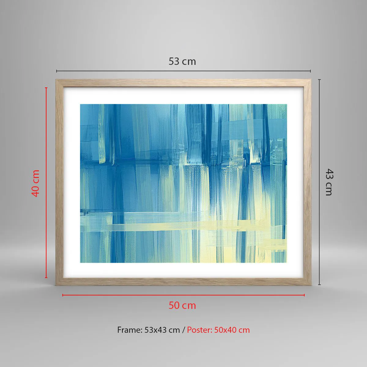 Pôster com moldura de carvalho claro - Composição em turquesa - 50x40 cm