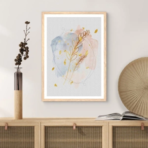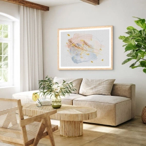 Pôster com moldura de carvalho claro - Explosão dourada - 91x61 cm