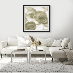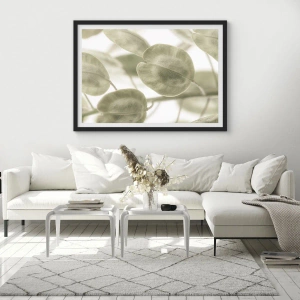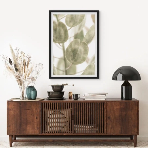"No Princípio, Havia Folhas..." é um pôster sutil que retrata um close-up de folhas verdes sob luz natural. Cores harmoniosamente selecionadas e transições tonais suaves conferem leveza à imagem e criam uma atmosfera de paz. Graças ao seu estilo minimalista, ele se encaixa perfeitamente em interiores modernos.