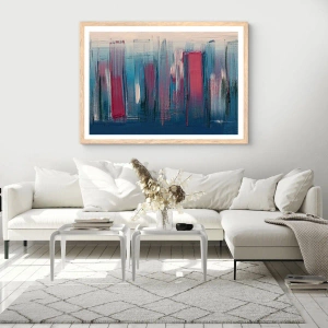 Pôster com moldura de carvalho claro - Composição vertical em azul e vermelho - 40x30 cm