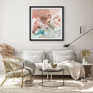 Pôster com moldura preta - Uma composição pictórica de rosas em tons pastéis - 50x70cm - O espírito do romantismo - Decoração de parede moderna para a sala de estar e quarto ARTTOR