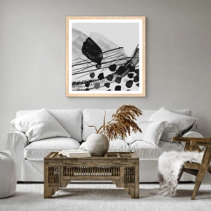 Pôster com moldura de carvalho claro - Abstração orgánica em preto e branco - 60x60 cm