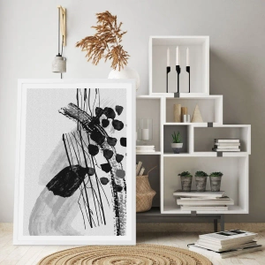 Pôster em moldura branca - Abstração orgánica em preto e branco - 61x91 cm