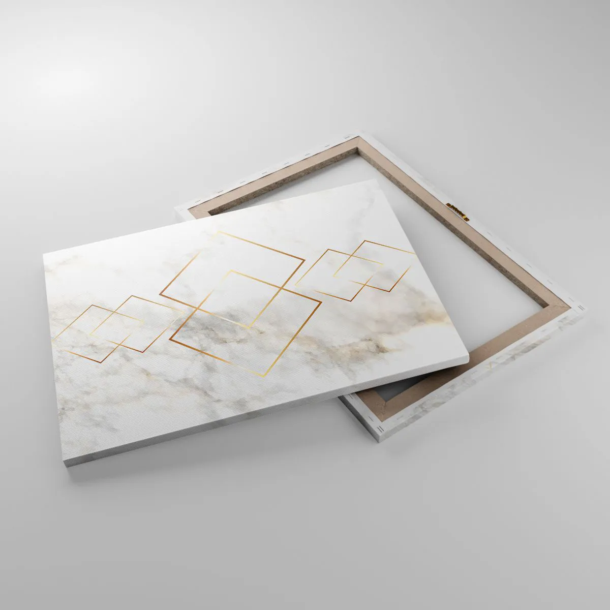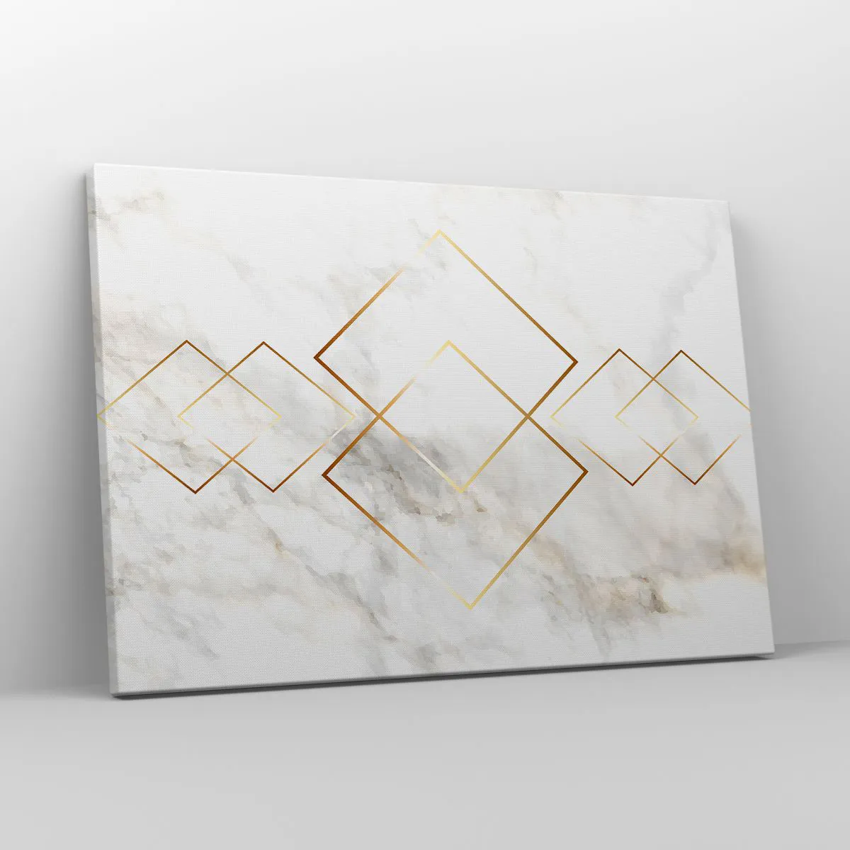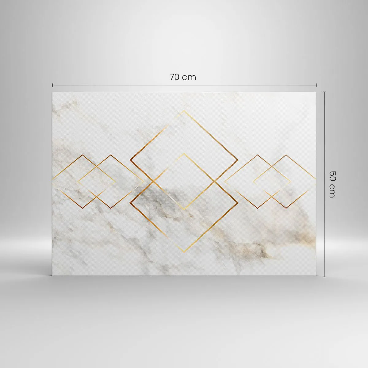 Quadro em tela - Losangos dourados minimalistas sobre fundo de mármore - 70x50cm - Vista ao infinito - Decoração de parede moderna para a sala de estar e quarto ARTTOR