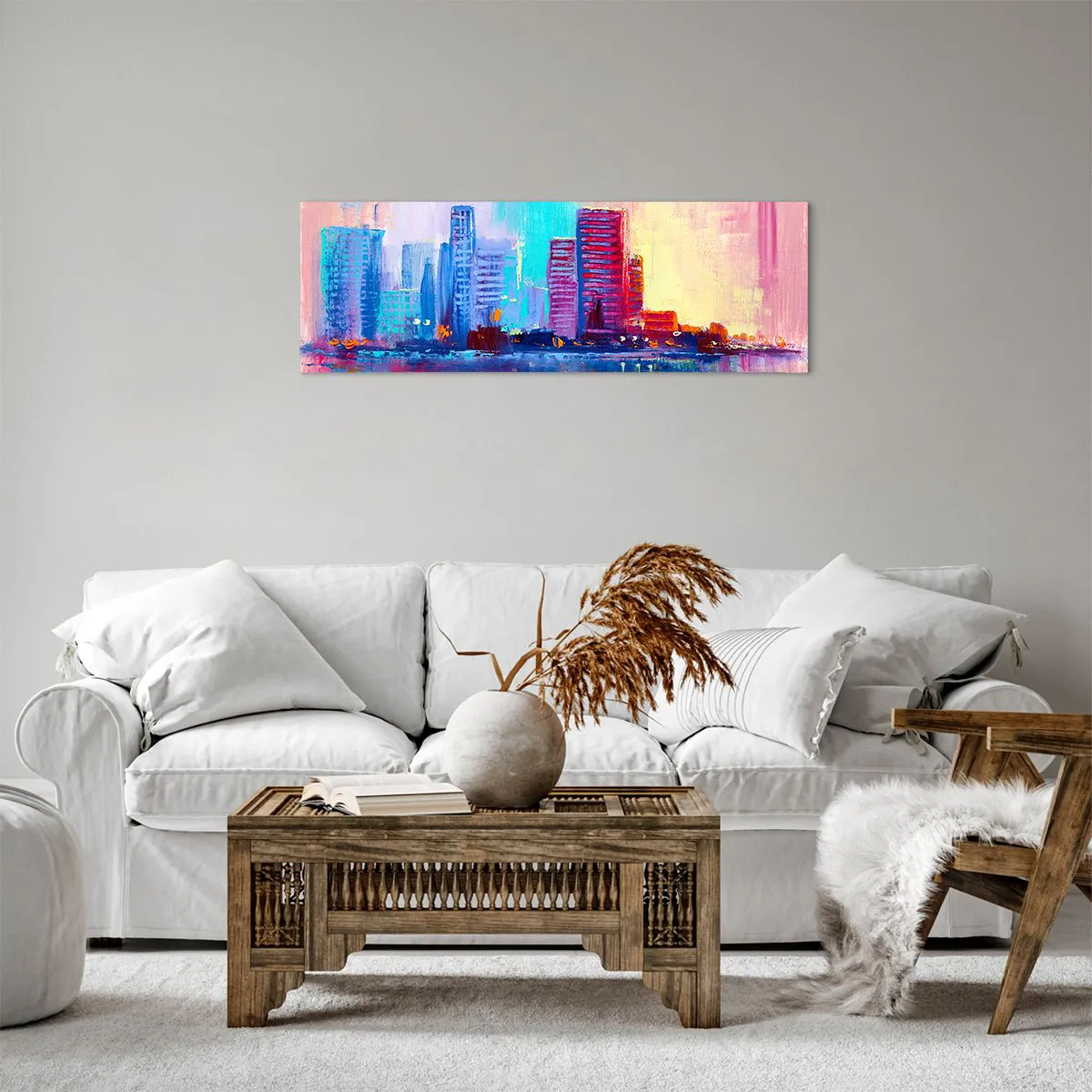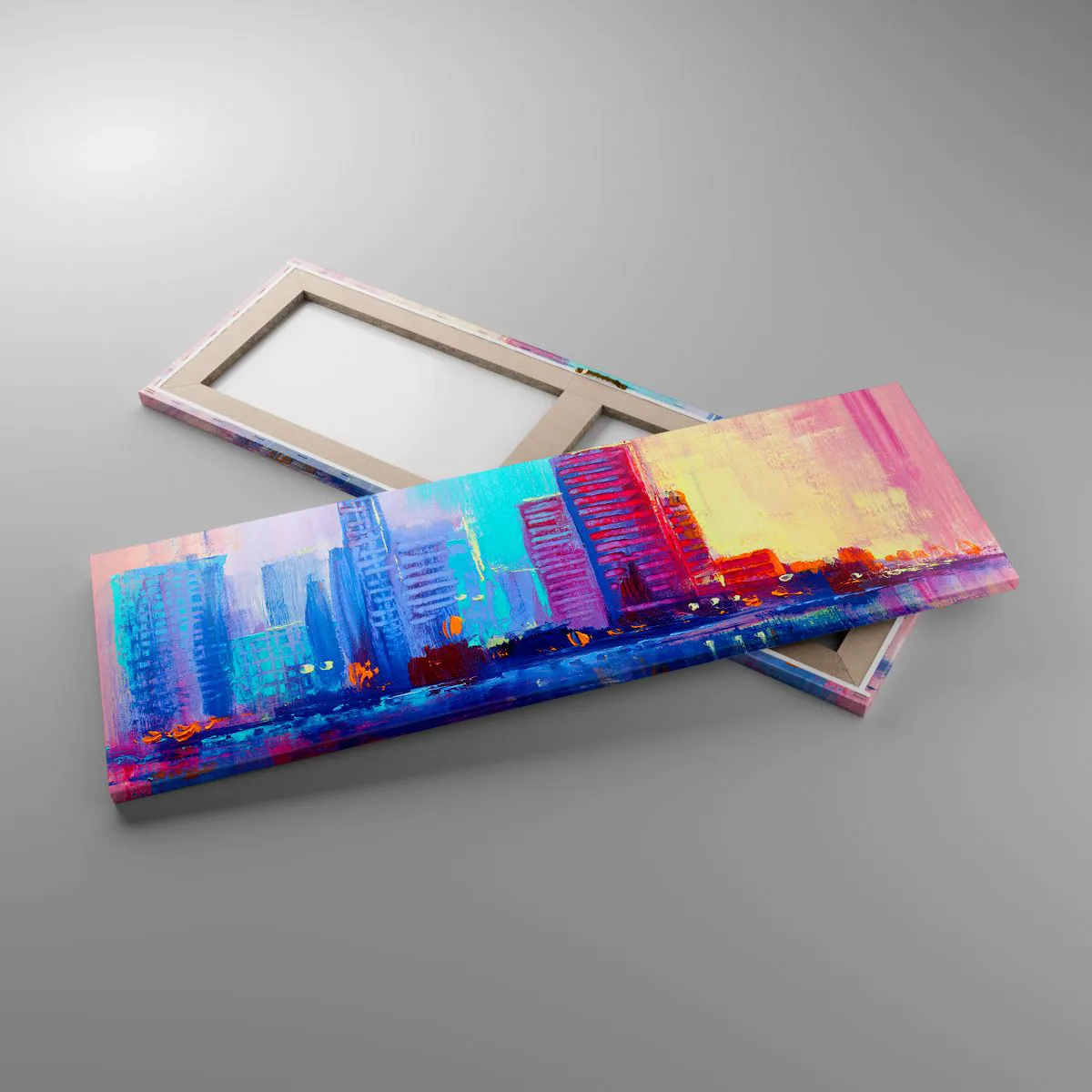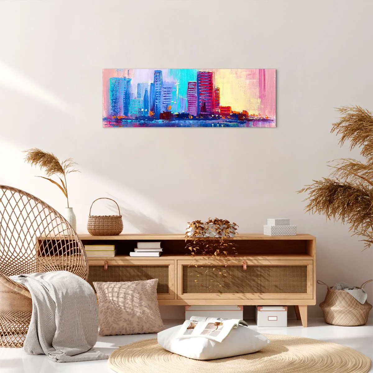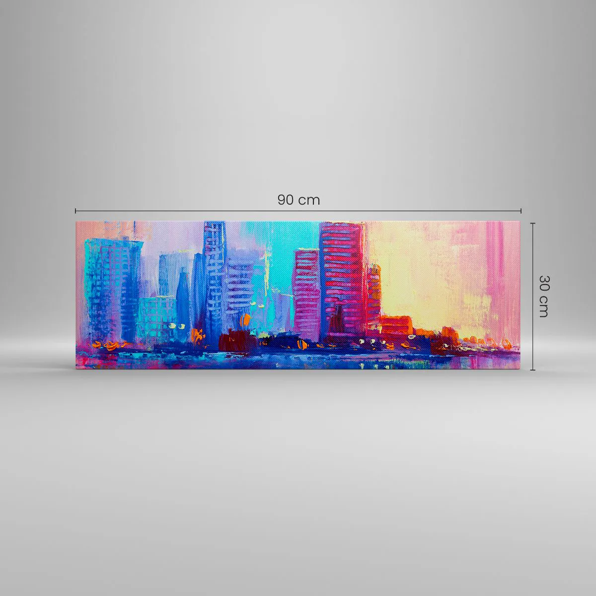 A tela é esticada na moldura. Os lados e bordas são impressos para criar uma continuação da imagem. O quadro está pronto para ser pendurado na parede. Cada produto tem um gancho ligado à moldura e um conjunto de montagem (parafuso + cavilha).