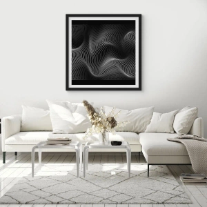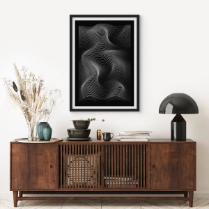 - pôster apresenta ondas minimalistas em preto e branco. A sutil interação de linhas cria um design elegante e moderno, perfeito para interiores contemporâneos. Feito com materiais de alta qualidade, vem emoldurado em uma moldura preta.