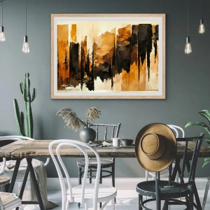 Pôster com moldura de carvalho claro - Harmonia de preto e dourado - 40x30 cm