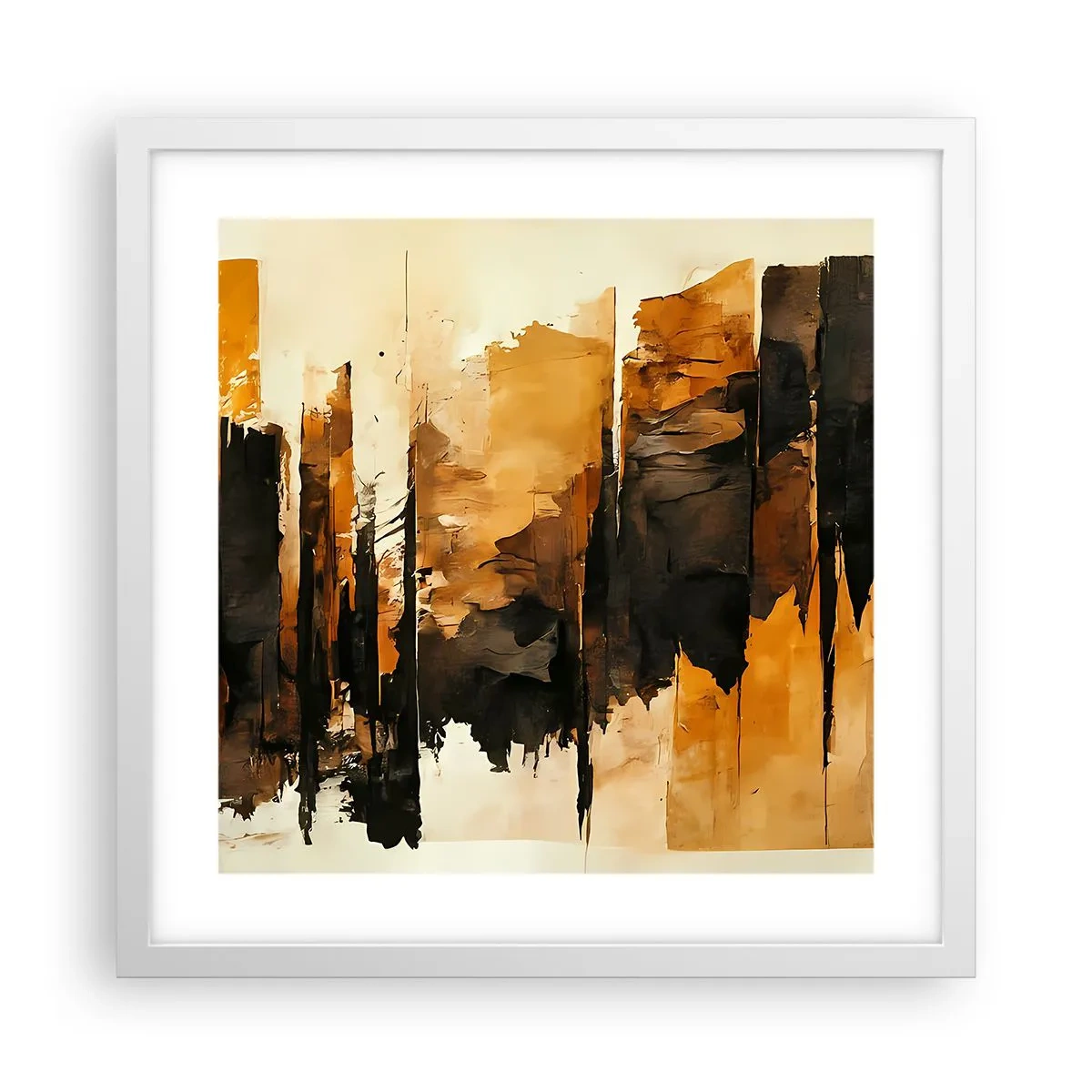 Pôster em moldura branca - Harmonia de preto e dourado - 40x40 cm
