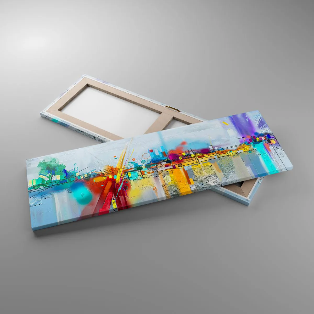 A tela é esticada na moldura. Os lados e bordas são impressos para criar uma continuação da imagem. O quadro está pronto para ser pendurado na parede. Cada produto tem um gancho ligado à moldura e um conjunto de montagem (parafuso + cavilha).