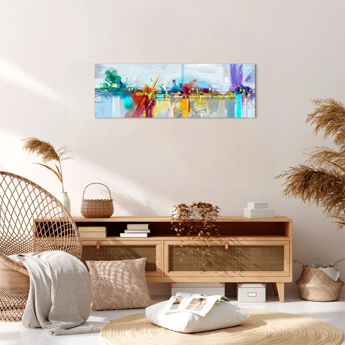 A tela usada em nossas pinturas é um tecido impermeável de alta qualidade com gramatura de 240 g/m2. É dedicado a plotters profissionais que permitem a produção de impressões ecológicas. Utilizamos tintas ecológicas, inodoras e duráveis, com profunda saturação de cores