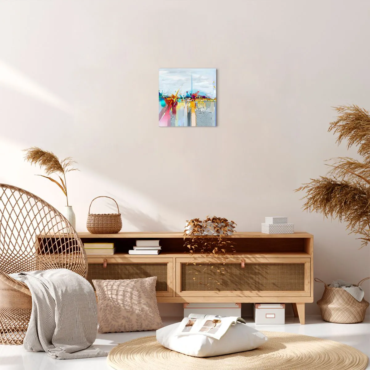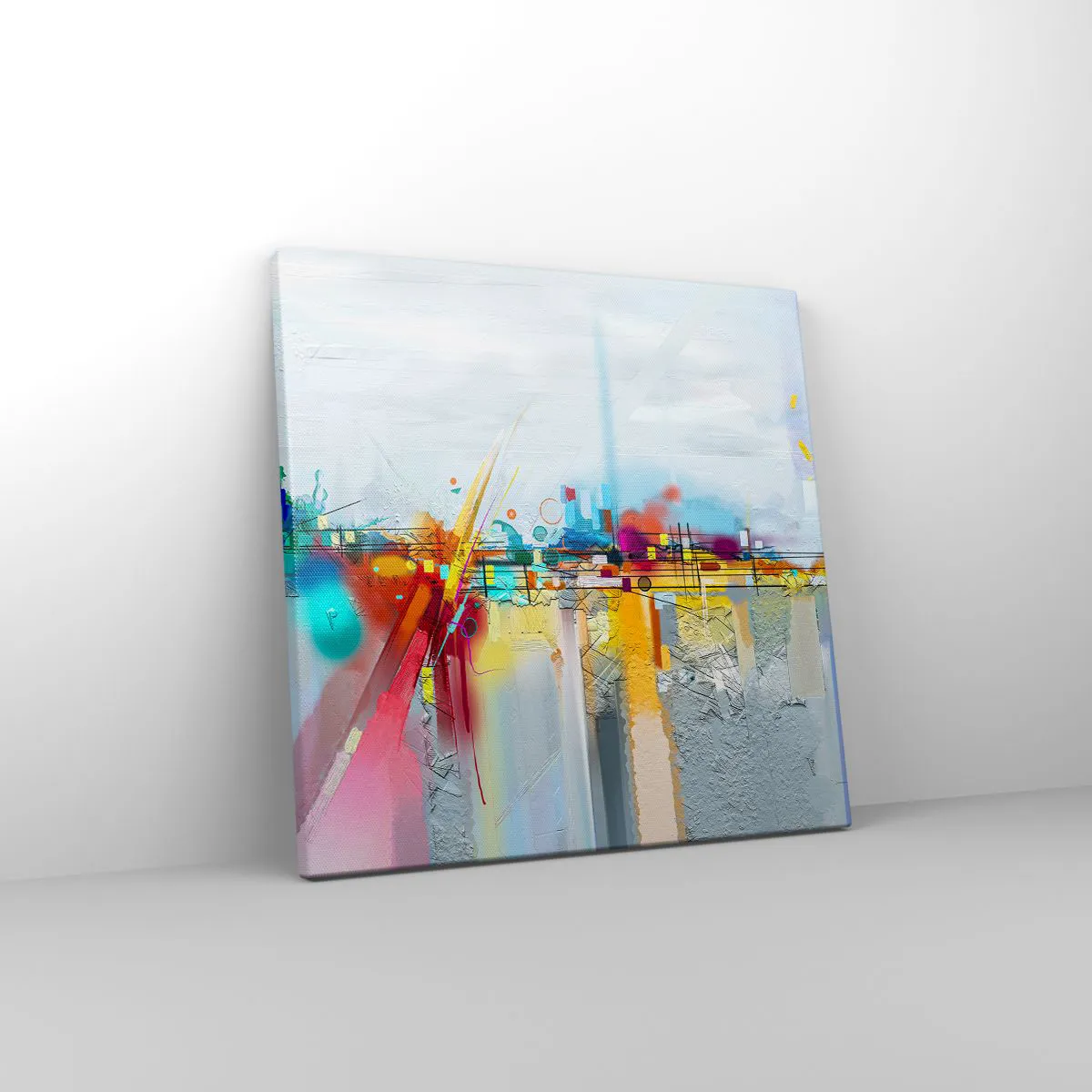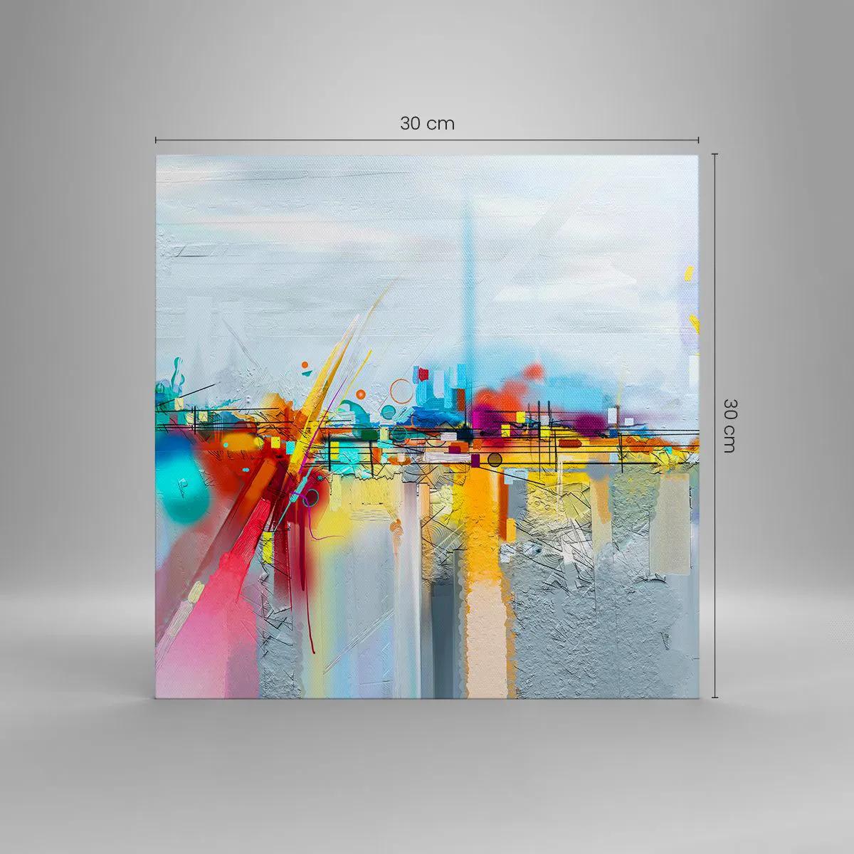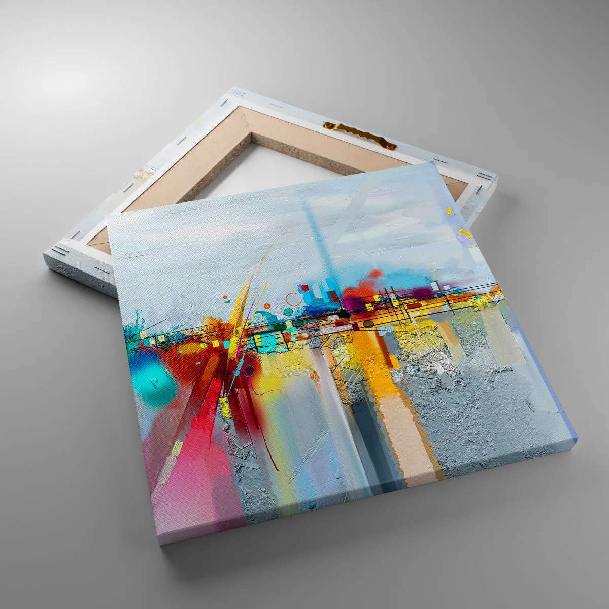 A tela é esticada na moldura. Os lados e bordas são impressos para criar uma continuação da imagem. O quadro está pronto para ser pendurado na parede. Cada produto tem um gancho ligado à moldura e um conjunto de montagem (parafuso + cavilha).
