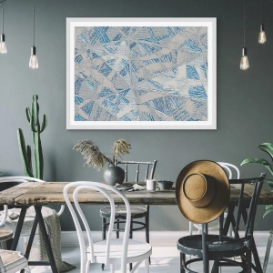 Pôster em moldura branca - Em um labirinto azul e cinza - 100x70 cm
