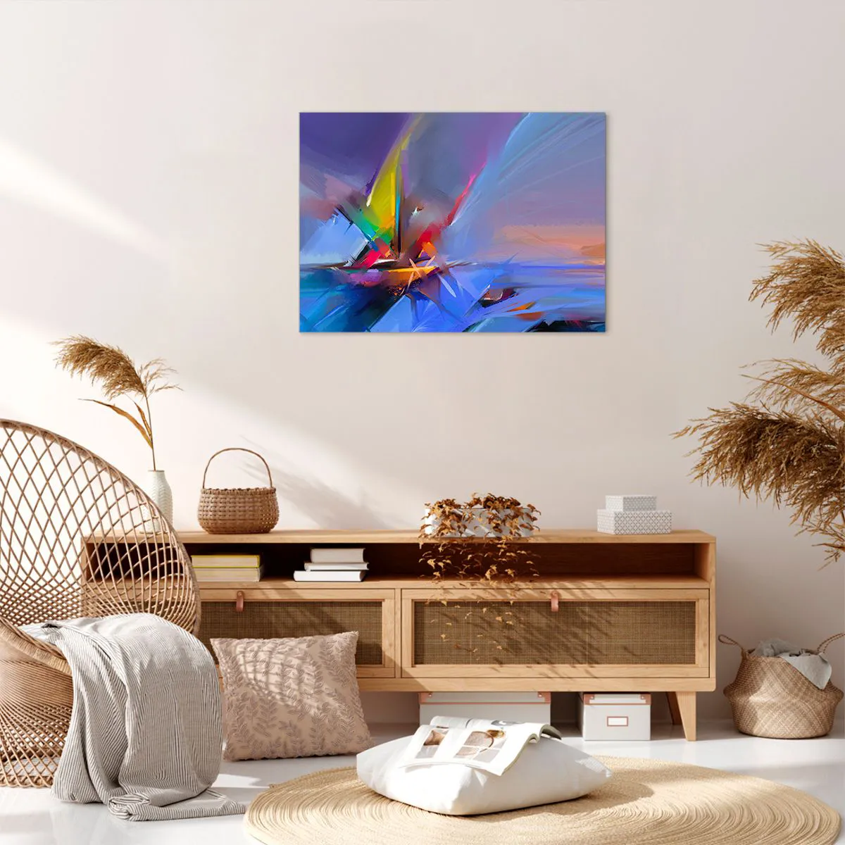 Quadro em tela - Composição abstrata com cores intensas - 70x50cm - Como as asas de um pássaro - Decoração de parede moderna para a sala de estar e quarto ARTTOR
