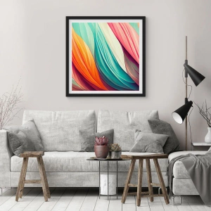 Pôster com moldura preta - Uma composição abstrata de linhas onduladas em cores intensas. - 50x70cm - Tecido arco-íris - Decoração de parede moderna para a sala de estar e quarto ARTTOR