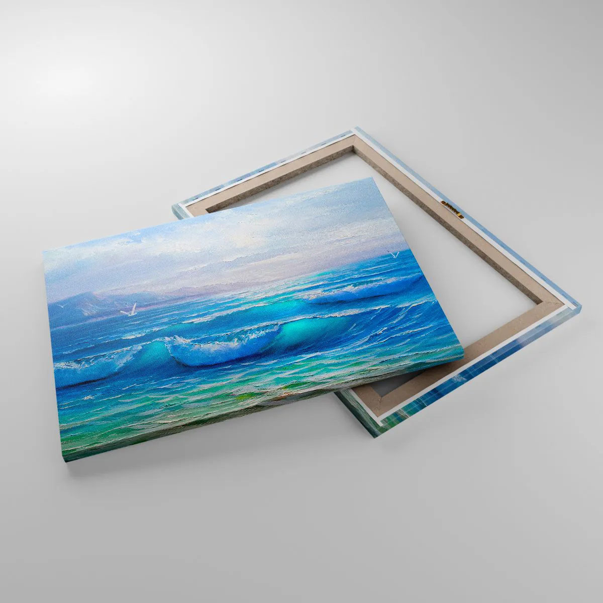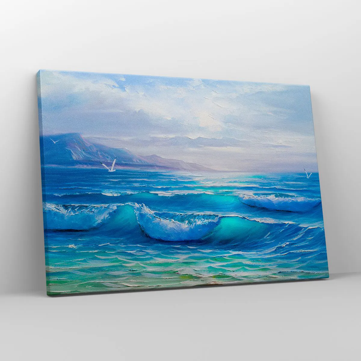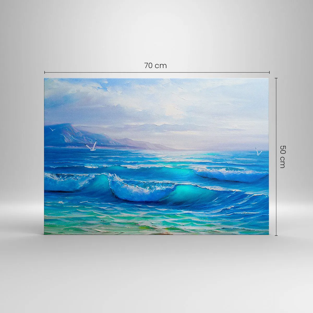 Quadro em tela - Uma paisagem marinha pitoresca com ondas e um céu azul - 70x50cm - Conforta e consola - Decoração de parede moderna para a sala de estar e quarto ARTTOR