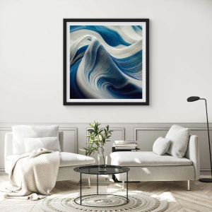 Pôster com moldura preta - A fluidez do azul e do branco - 70x100 cm
