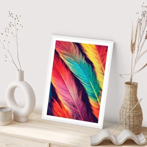 Pôster em moldura branca - Arco-íris emplumado - 50x70 cm