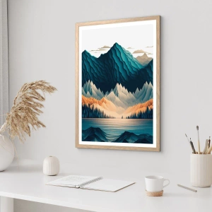 Pôster com moldura de carvalho claro - Paisagem montanhosa perfeita - 50x50 cm
